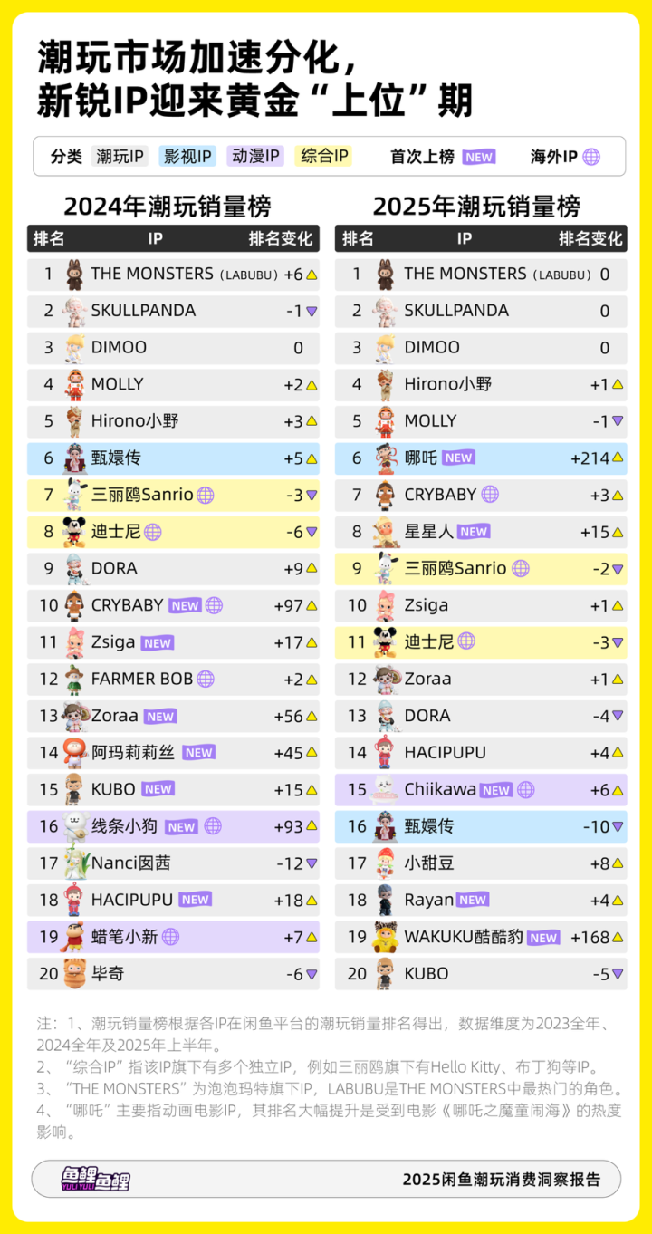 据《2025闲鱼潮玩消费洞察报告》显示,国内潮玩市场加速分化,本土新IP迎来黄金上升期。